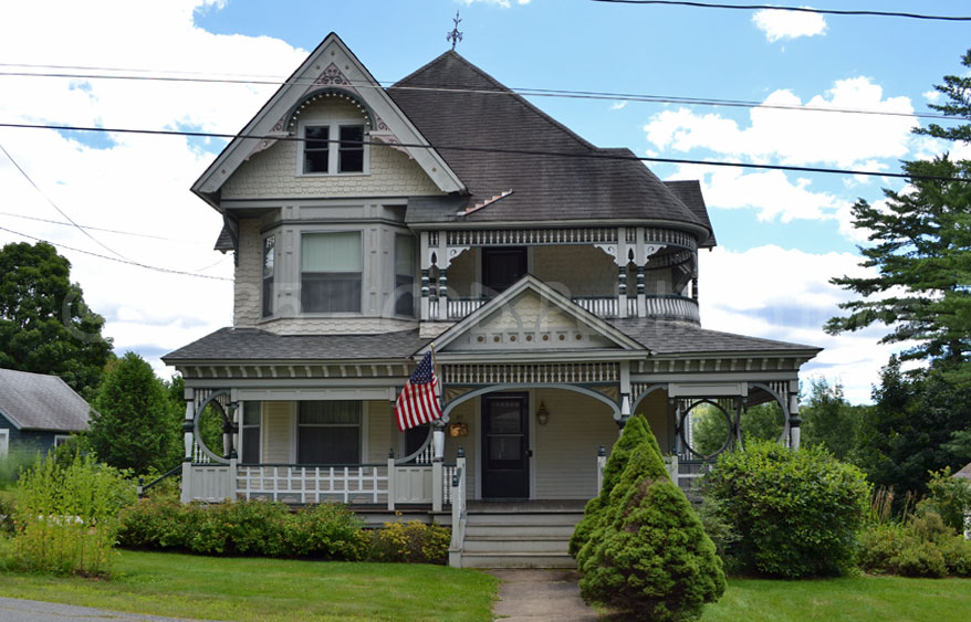 The style of this house is one much admired and will never wear out. The porch and balcony are prominent features and require tasteful treatment. The first story is weather-boarded, the second story, gables, and roof are shingled. Cellar under the entire house, with brick foundation. Hardwood interior finish, of neat design, is liberally used, and everything in the way of plumbing, glass, hardware, etc., is first-class. Size is 36 x 47 feet over porches. First story is 10 feet, second story 9 foot 2 inches, cellar 7 feet. The cost of this house was more than that given above, but for the average locality our figures are close to correct.