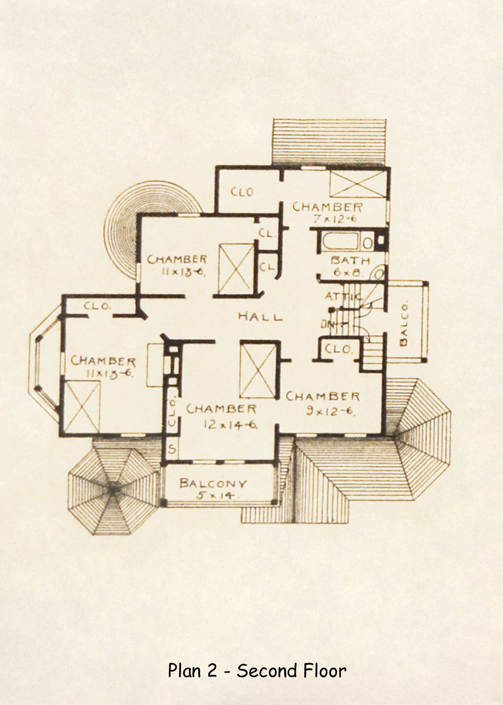 This is a modern artistic house; the exterior trimming is so arranged as to be substantial and durable, and is a grand house to occupy a sightly position - a river view or the intersection of streets. The outside cellar-way is under the stair balcony, as seen in the engraving. The house has a union stair-case, but we will make plans with back stairs cut off from front ones if desired. Price of plans, with bill of materials. . . . $40.00. Plan 1 - 48 x 47 feet. Height of first story, 10 feet; second story, 9 feet 2 inches. Plan 2 - 51 x 50 feet. Height of first story, 10 feet; second story, 9 feet 2 inches.